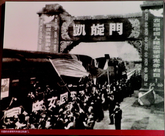 ▲归国的志愿军列车驶过凯旋门。