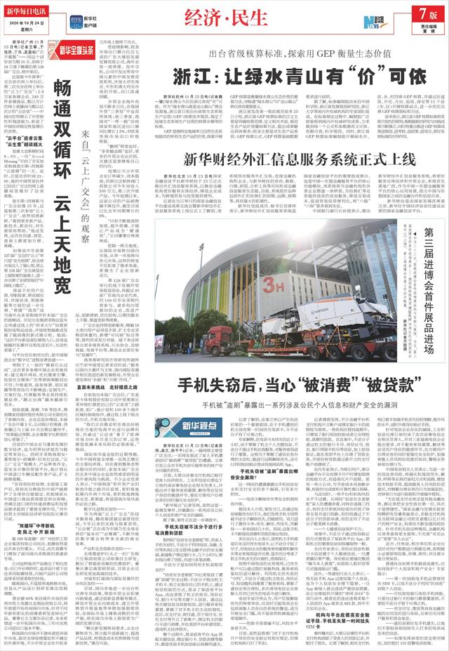 | ( 2020-10-24 ) 稿件来源:新华每日电讯 经济·民生 |