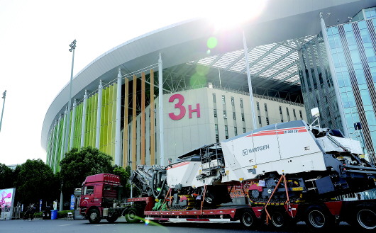 10月23日,装载进博会首件进场展品的卡车驶入展馆。当日,第三届进博会的首件进场展品——德国维特根集团W380CR冷再生机运抵国家会展中心(上海)。第三届进博会布展工作拉开帷幕。 新华社记者方喆摄