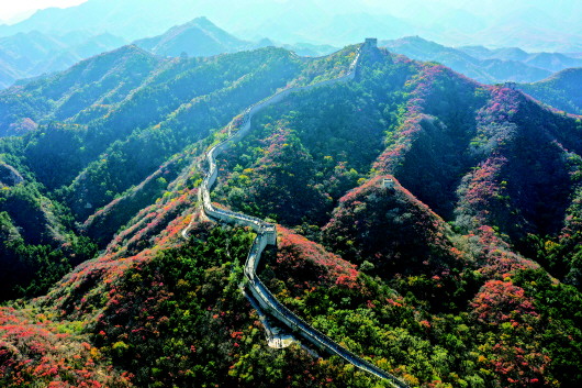深秋时节,北京八达岭长城红叶进入最佳观赏期,红叶映长城美如画卷(10月24日)。