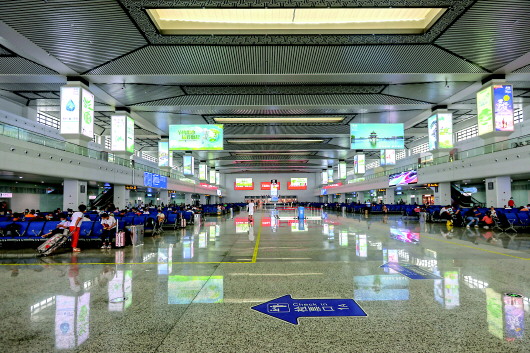 阜阳西站候车大厅(8月20日摄)。 新华社记者王翔摄 |