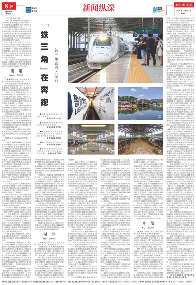 今年八九月间,本报记者穿行长三角铁路线,行程数千公里,走访江苏南通、浙江湖州、安徽阜阳等长三角铁路“新枢纽城市”,切身感受奔跑中的“铁三角”。