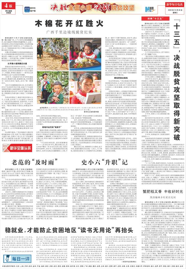 | ( 2020-10-28 ) 稿件来源:新华每日电讯 决胜全面小康·决战脱贫攻坚 |