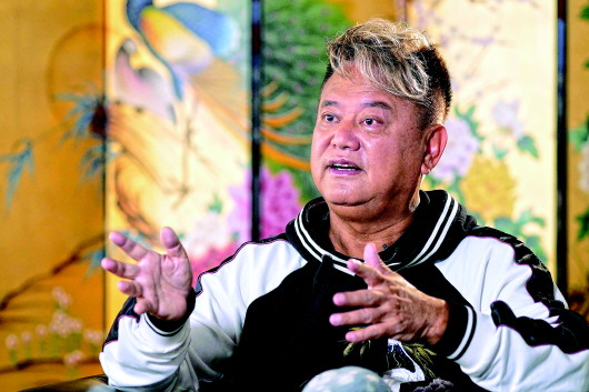 出现在记者面前的陈百祥身着夹克和牛仔裤,浓眉大眼,身形健硕,不敢相信他已年届古稀。