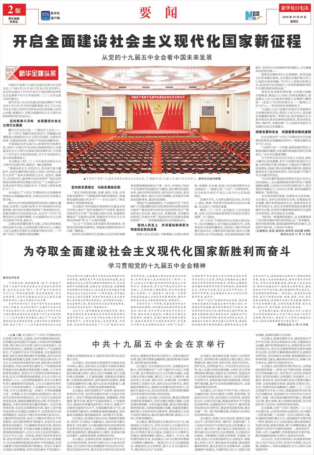 | ( 2020-10-30 ) 稿件来源:新华每日电讯 要 闻 |