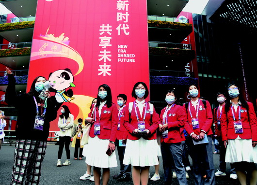 ▲10月28日,志愿者们在巡馆。当日,第三届中国国际进口博览会的近千名志愿者分时段、分批次进入国家会展中心(上海)巡馆。志愿者“小叶子”们在带队老师的引领下,详细了解场馆、展厅和重要标识,并结合地图实地行走,以更快地熟悉场地;另有约160名咨询引导岗位志愿者进入岗位实训,快速熟悉场馆信息和岗位职责,以应对会期的各类咨询。 新华社发