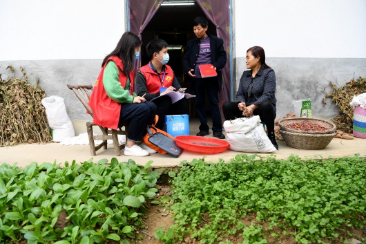 十一月一日,安徽省合肥市肥西县紫蓬镇普查员、普查指导员在居民家中进行登记。当日,第七次全国人口普查开启现场登记。