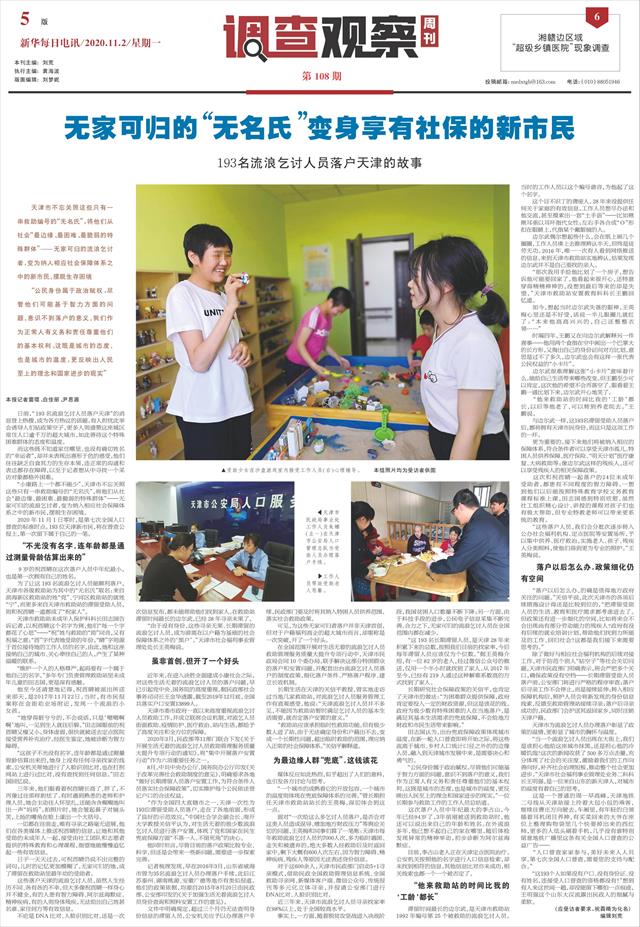 “小康路上一个都不能少”。天津市不忘关照这些只有一串救助编号的“无名氏”,将他们从社会“最边缘、最困难、最脆弱的特殊群体”——无家可归的流浪乞讨者,变为纳入相应社会保障体系之中的新市民,摆脱生存困境。