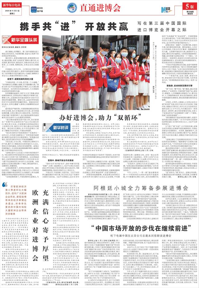 | ( 2020-11-03 ) 稿件来源:新华每日电讯 直通进博会 |