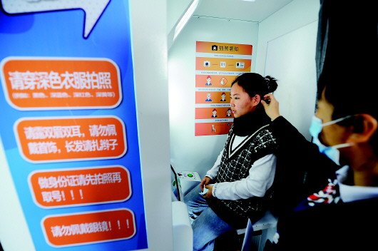 ▲10月31日,居民在绍兴市诸暨市政务服务大厅内的公安综合自助服务体验区办理身份证业务。 |
