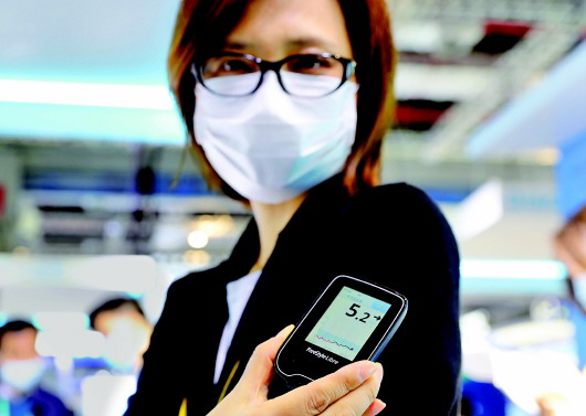 ▲11月5日,雅培展台工作人员演示瞬感动态血糖仪。雅培公司今年首次参展进博会,其在疫情防控中显示的强大快速检测能力令其展品广受关注。今年,近50家世界500强及行业龙头企业首次参展,覆盖全部六大展区。