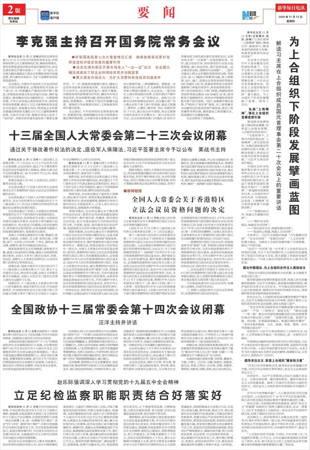 | ( 2020-11-12 ) 稿件来源:新华每日电讯 要 闻 |