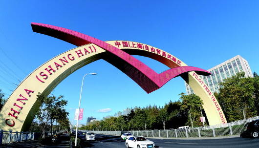 位于上海浦东新区杨高北路上的中国(上海)自由贸易试验区标志门(11月11日摄)。 新华社记者方喆摄 |