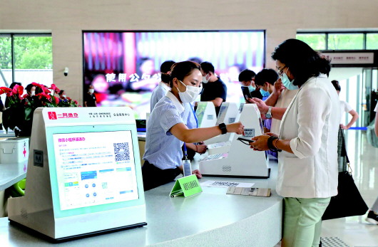 上海浦东新区2019年率先启动“一业一证”改革。这是在上海市浦东新区企业服务中心办事大厅,工作人员指导市民通过手机小程序办理一网通办业务(8月4日摄)。新华社记者方喆摄