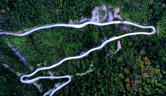 11月10日,车辆行驶在湖北省鹤峰县铁炉白族乡渔山村的公路上(无人机照片)。