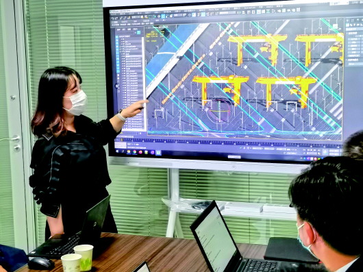 ▲图为工作人员正在演示建设中的乌鲁木齐国际陆港区中欧班列集结中心扩建工程(一期)信息化项目,这一项目得到中央财政直达资金支持。
