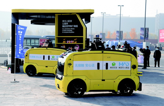 11月12日拍摄的室内展区展出的氢燃料电池无人驾驶车辆。 |
