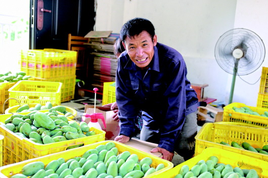 田东县林逢镇东养村党总支书记陆秀缎记得,有一年芒果一斤才六毛钱,而每斤成本要一块二三,果农请人采摘再找车运到批发市场就是亏上加亏,以至于有人直接把芒果从山上拉到河边倒了。