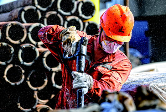 33岁的水手长孙鹏在甲板站了约半小时,就不自觉地捶打后腰——“很多工人都有腰肌劳损的毛病。”