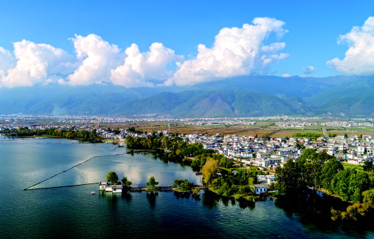 这是11月9日拍摄的苍山洱海间的村落(无人机照片)。新华社发(陈欣波摄)