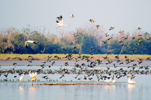 ▲这是11月11日在湖南西洞庭湖国家级自然保护区拍摄的候鸟。新华社记者陈思汗摄