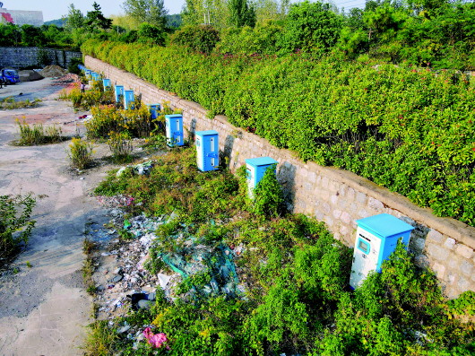 这是10月19日拍摄的淮南市舜耕山风景区旁的一排充电桩,周边杂草丛生。