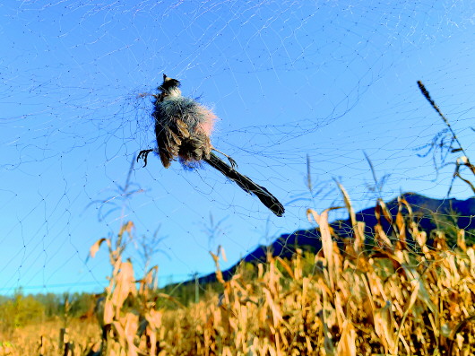 “那边又有一张捕鸟网!”在河北省承德市双桥区大石庙镇秋窝村的一处玉米地,野生动物保护志愿者邢世杰一边喊,一边向前冲去。