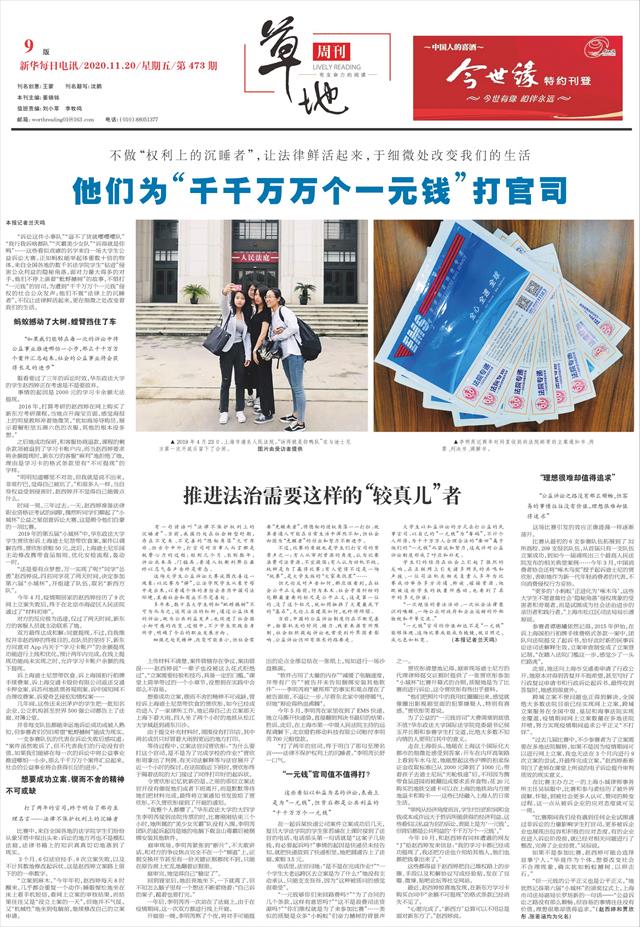 大学生以私益诉讼的方式去打公益的民事官司。以自己的“一元钱”为“筹码”,不计个人所得,为千千万万人合理合法的“要回”属于他们的“一元钱”而尝试和努力,这或许对公益诉讼制度形成了呼应和补充。