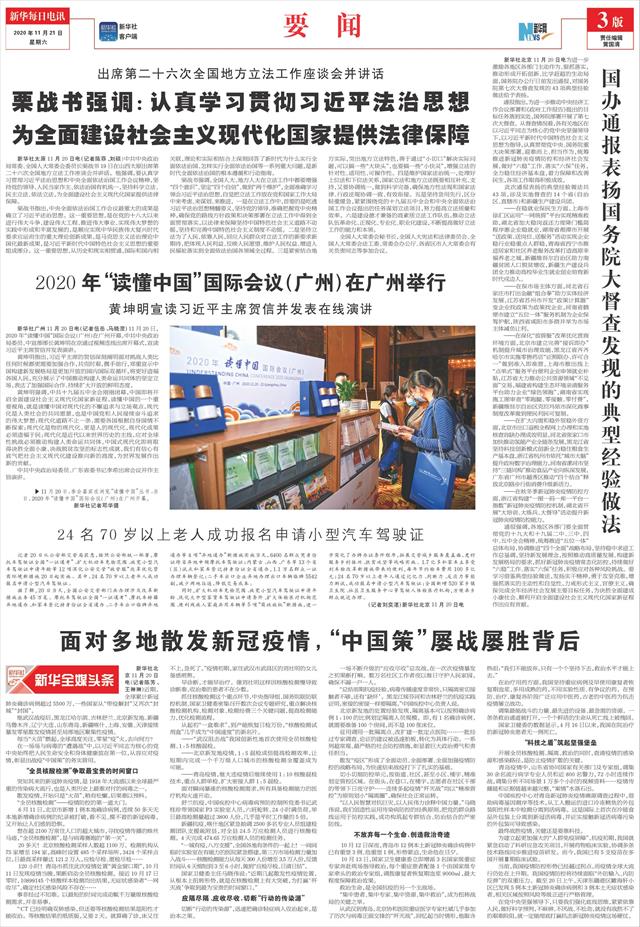 | ( 2020-11-21 ) 稿件来源:新华每日电讯 要 闻 |