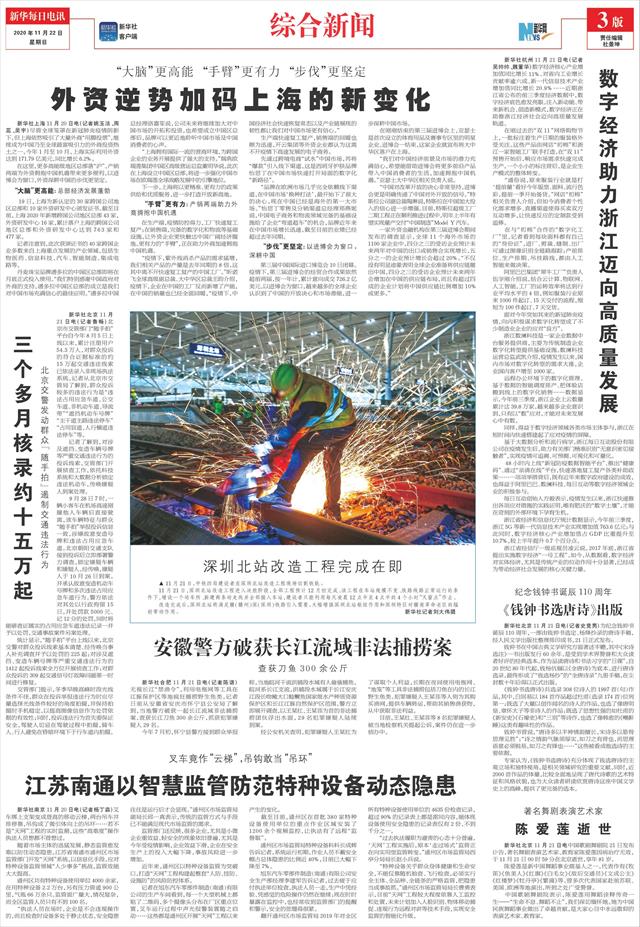 | ( 2020-11-22 ) 稿件来源:新华每日电讯 综合新闻 |