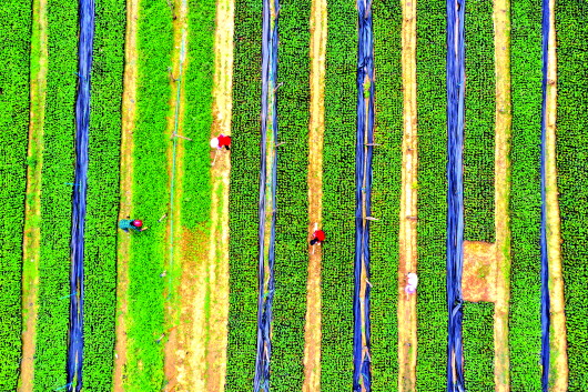 ▲11月20日,村民在江西兴国县埠头乡龙砂村碧桂园苗木花卉基地务工。目前,该县已建成产业扶贫基地515个,累计联结带动贫困户28377户(次)持续稳定增收。 (陈鹏摄)