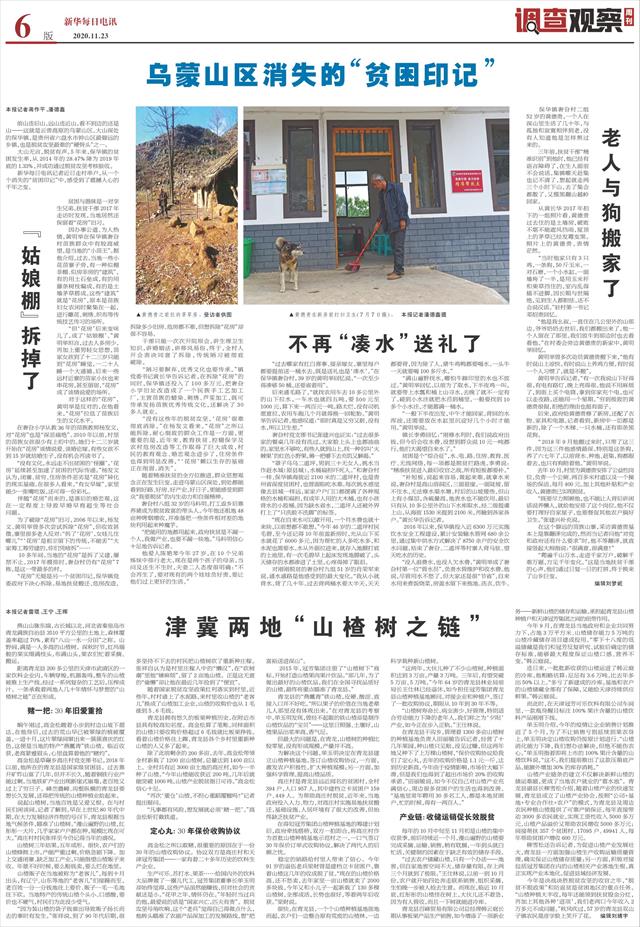 在青龙县干沟乡,管理着1300多亩山楂树的种植基地负责人田丽敏告诉记者,经营了十几年果园,种山楂只见赔,没见过赚,但这两年她又种下了上万棵山楂树,“保价收购协议给我们了定心丸,去年的收购价格是1.1元一斤,达到历史新高,今年由于疫情影响,市场价大幅下滑,但是我们也得到了超出市场价20%的收购承诺。”田丽敏说,如今不仅自己对山楂产业充满信心,周边很多贫困户的生活也得到改善。“基地里常年聘用30多名工人,都是本地贫困户,忙的时候,得有一两百人。”