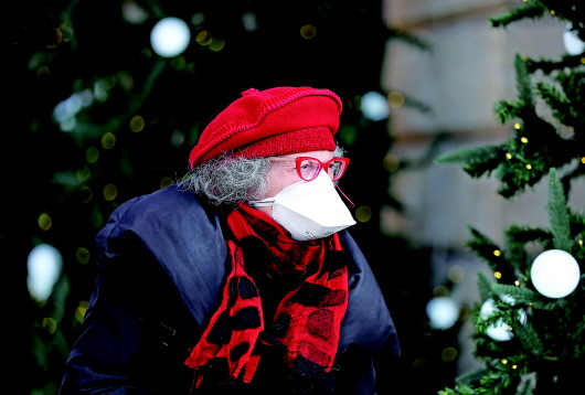 11月25日,一名女子走过法国巴黎街头的圣诞树。法国总统马克龙24日发表电视讲话说,鉴于法国第二波新冠疫情高峰已经过去,计划从11月28日起分三个阶段解除封禁措施。 新华社记者高静摄