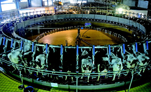 ▲河南省驻马店市正阳现代化牧场挤奶车间一角(10月27日摄)。            新华社记者朱祥摄