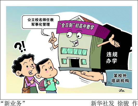 国家多次发文规范治理校外培训机构,但“新华视点”记者调查发现,一些培训机构近年来开发了新业务——“全日制”初高中教学。这些机构租赁公寓楼或职业院校场地,以“公立校名师任教”“军事化管理”为招生噱头,收取高额学费。