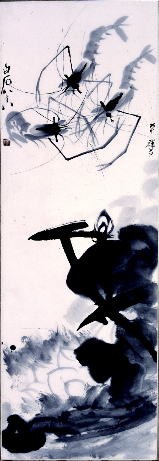 ▲齐白石、张大千合作《荷虾图》。 徐悲鸿博物馆供图 |
