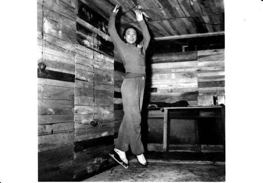 ▲全国女子花样滑冰冠军文海美,在哈尔滨工业大学师生研制的人工冰场模型上试滑。 |