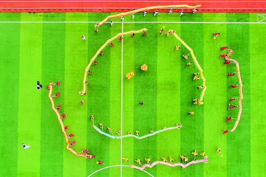 湖南省湘潭医卫职业技术学院组建校龙狮队,让学生感受中华传统体育的魅力。图为学生们正在操场上练习舞龙舞狮。新华社记者陈思汗摄