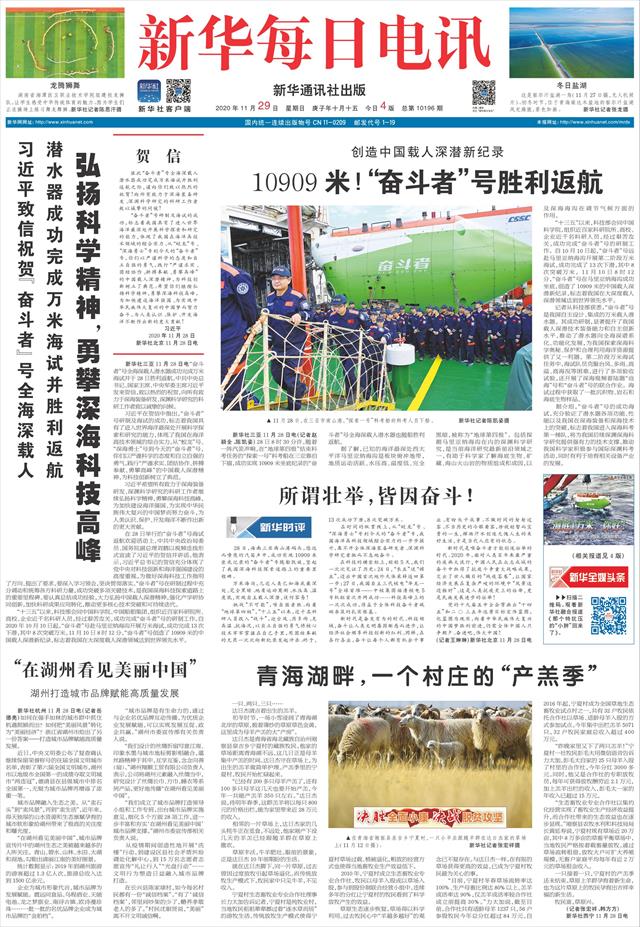 | ( 2020-11-29 ) 稿件来源:新华每日电讯 要 闻 |