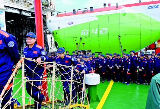 “十三五”以来,科技部会同中国科学院,组织近百家科研院所、高校、企业近千名科研人员,经过艰苦攻关,成功完成“奋斗者”号的研制工作。自10月10日起,“奋斗者”号远赴马里亚纳海沟开展第二阶段万米海试,成功完成了13次下潜,其中8次突破万米。11月10日8时12分,“奋斗者”号在马里亚纳海沟成功坐底,创造了10909米的中国载人深潜新纪录,标志着我国在大深度载人深潜领域达到世界领先水平。