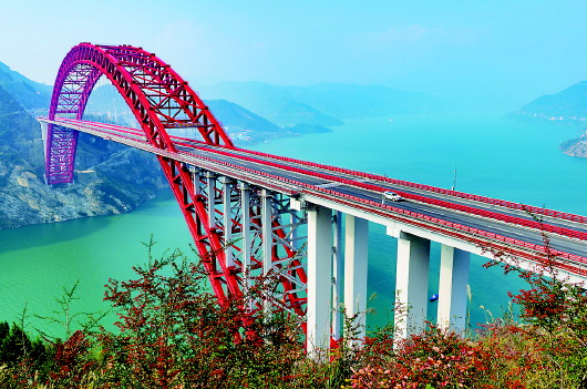 11月29日拍摄的湖北省秭归县秭归长江公路大桥。冬日,三峡库区山林五彩斑斓,景色迷人。 新华社发(郑家裕摄)