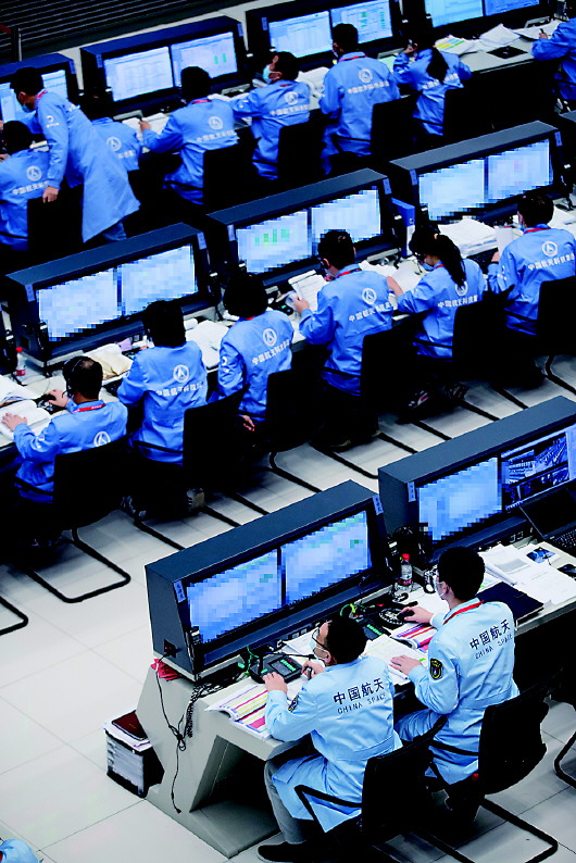 ▲12月1日,在北京航天飞行控制中心,航天科技人员在监测嫦娥五号探测器落月过程。 新华社发(国家航天局供图) |