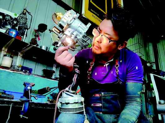 生活在浙江建德的陈杰,是一名“再生艺术家”。去年以来,他用废旧缝纫机、修鞋机、磅秤等做了不少再生艺术装置。别人眼中的废铁,他10元钱淘回来,不仅起死回生,还能卖出高价。在他启发下,有用户索性寄了旧车零部件给他,让他代为改装成一个灯。