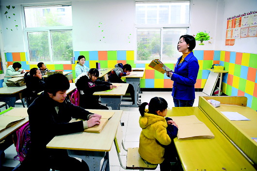 11月26日,芜湖市盲人学校校长席蔚菁在为盲生上课。