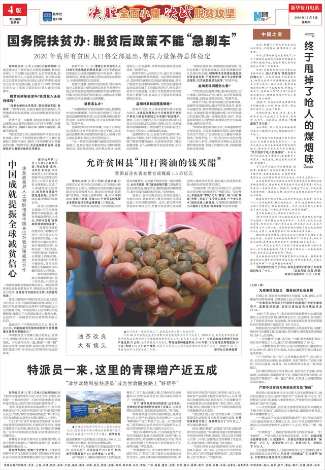 | ( 2020-12-03 ) 稿件来源:新华每日电讯 决胜全面小康·决战脱贫攻坚 |