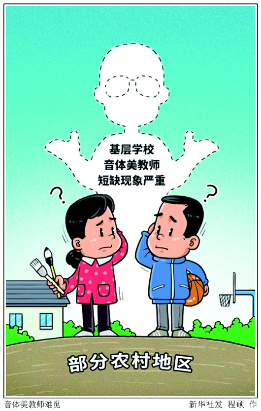 记者在多地采访了解到,虽然学校体育、美育这些年取得长足发展,但音体美教师短缺问题在一些地区仍十分突出。2019年全国义务教育均衡发展督导评估工作报告显示:35个基本均衡实地核查县中,有25个县不同程度缺少音乐、体育、美术、英语、科学、信息技术等学科教师,共缺2095名,此问题在农村学校更为突出。