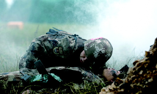 图2:卫勤专业参赛队员在进行战场“伤员”急救(11月29日摄)。 新华社发(武一明摄) |