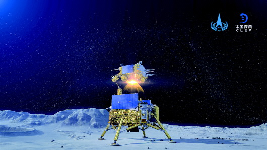 记者从国家航天局获悉,12月3日23时10分,嫦娥五号上升器月面点火,3000牛发动机工作约6分钟后,顺利将携带月壤的上升器送入到预定环月轨道,成功实现我国首次地外天体起飞。 新华社发(国家航天局供图)