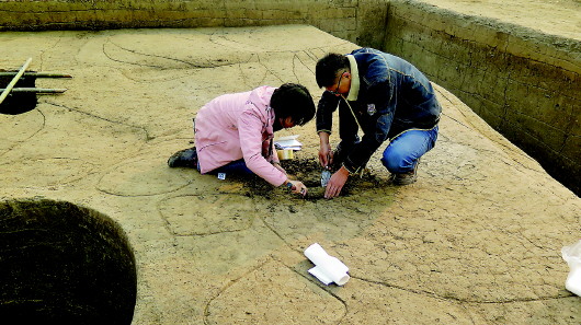 28座仓储遗迹集中分布在时庄遗址一处面积约5600平方米的人工垫筑台地上。考古人员在仓储遗迹底部检测出粟、黍类作物的成分,以及用于地面铺垫或编织物的芦苇类植物成分。“此外,土壤中也检测出黍素成分。结合仓储遗迹的建筑形制,判断其性质为粮仓。”河南省文物考古研究院时庄遗址项目负责人曹艳朋说。