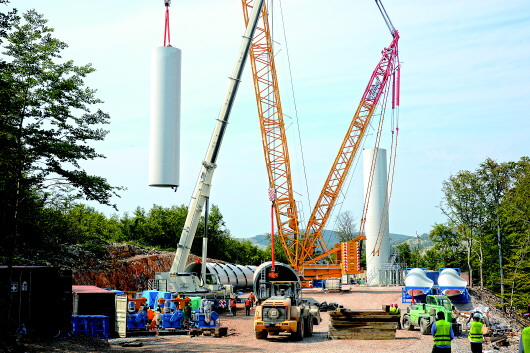 ▲这是9月16日拍摄的克罗地亚塞尼风电项目风机塔筒吊装施工现场。 新华社记者高磊摄 |